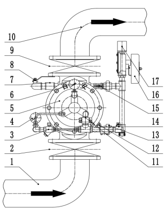 關(guān)閉消防電磁閥(13)及手動緊急控制球閥(14),打開復(fù)位球閥(3)雨淋閥很快就復(fù)位。然后將各閥門置于伺服工作狀態(tài)位置。